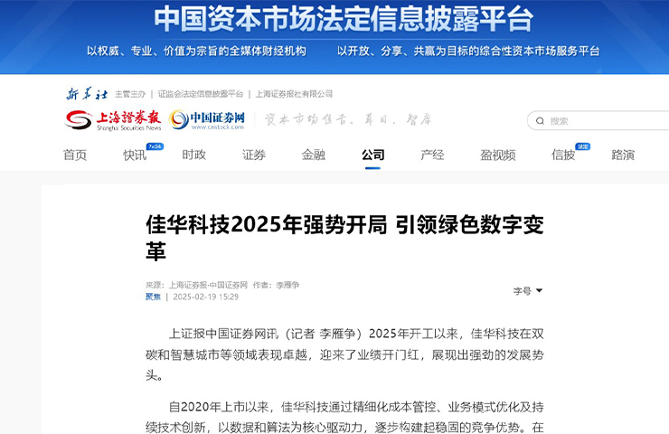 上海證券報(bào) | 佳華科技2025年強(qiáng)勢(shì)開局 引領(lǐng)綠色數(shù)字變革